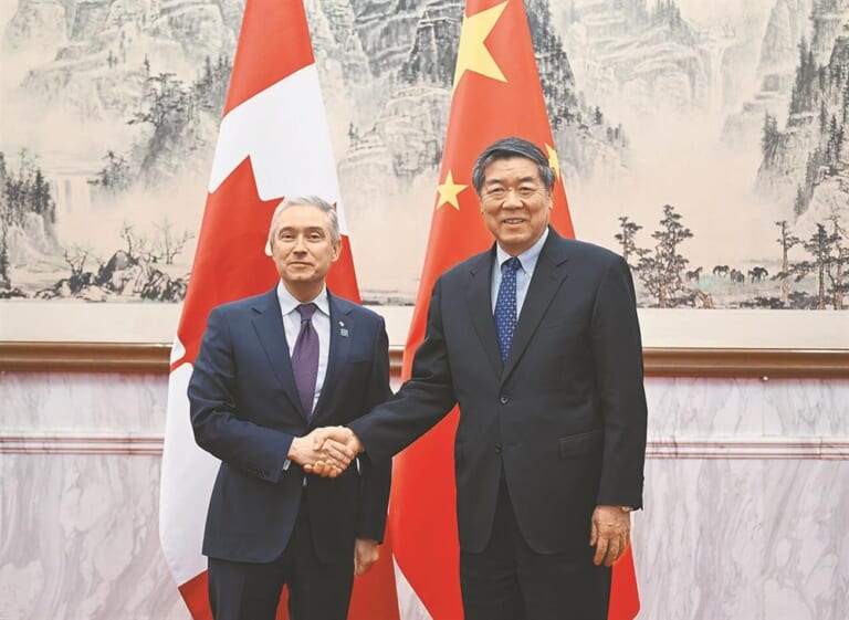 在加拿大財政部長商鵬飛近日訪問大陸之際,陸加金融工作組首次會議3日在北京舉行,由中國人民銀行行長潘功勝與商鵬飛共同主持。會上,雙方金融管理部門就全球宏觀經濟、貨幣政策、金融監管、金融市場發展、金融治理與全球不確定性等議題交換意見,一致認為加強監管與金融機構之間交流,有助營造穩定、可預期的營商環境,促進兩國經貿往來。
